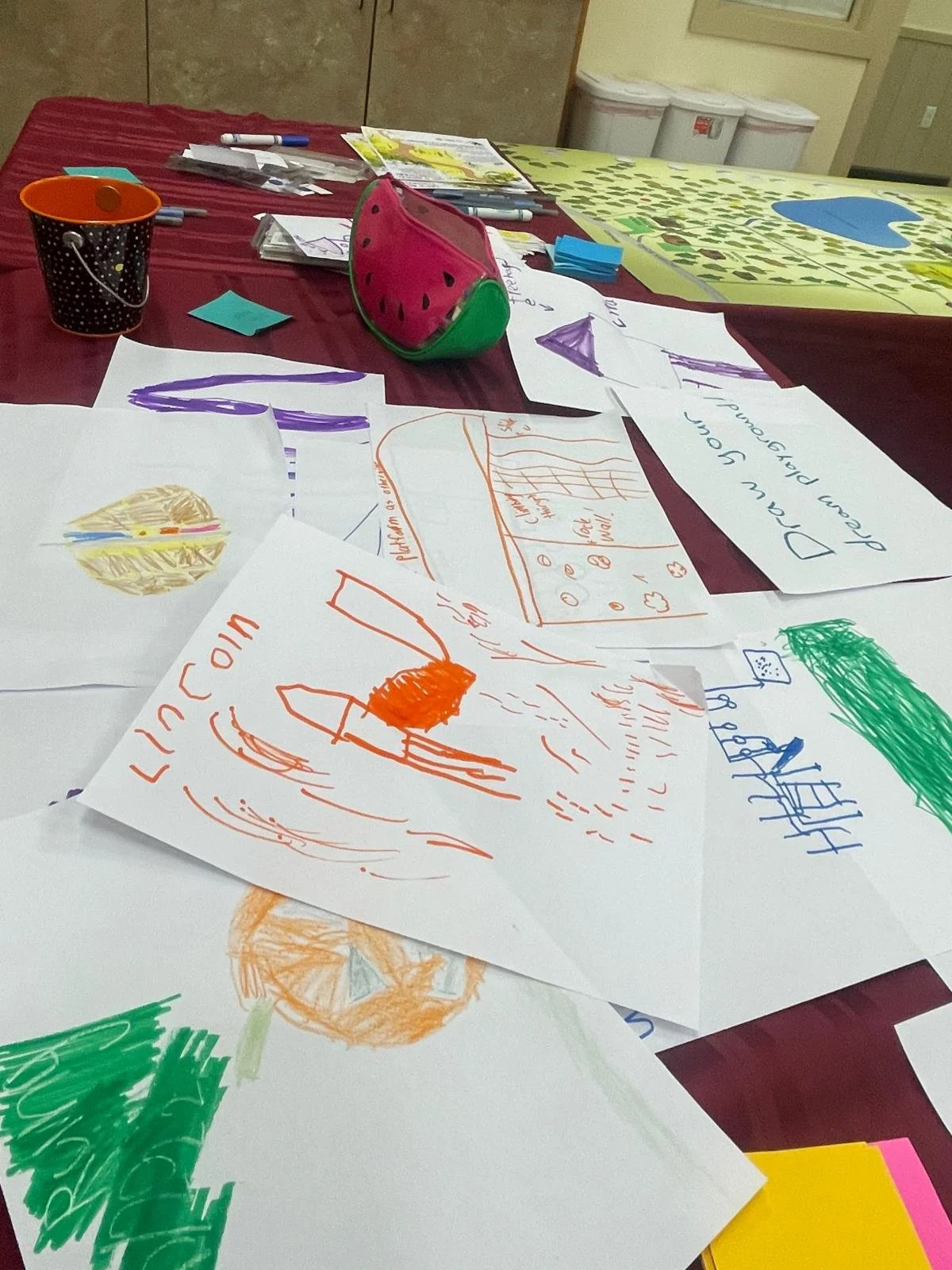 A drawing activity for children to draw their dream playground to get a sense of what children play with in a playground environment.